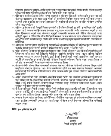 सुकुम्बासी बस्ती हटाउने कार्यबारे पनि बैठकले कडा आपत्ति जनाउँदै वैकल्पिक आवास व्यवस्था बिना गरिएको हटाउने कार्यले असहाय नागरिकमा संकट सिर्जना भएको उल्लेख गरेको छ।