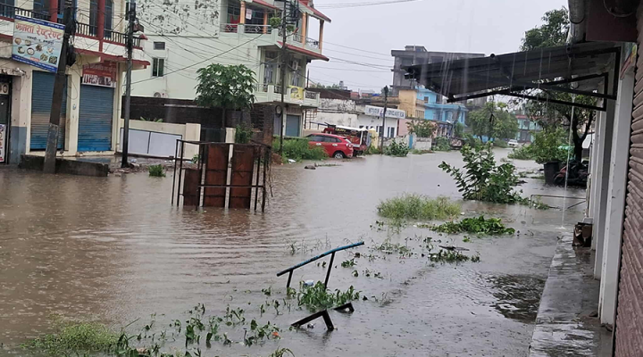 भारी वर्षाका कारण धनगढी बजार जलमग्न