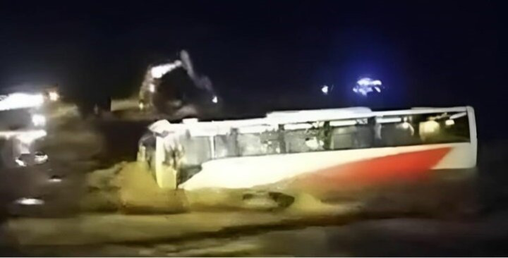 विनयी खोलामा आएको बाढीले यात्रुवाहक बस बगाएयो यात्रु सकुशल