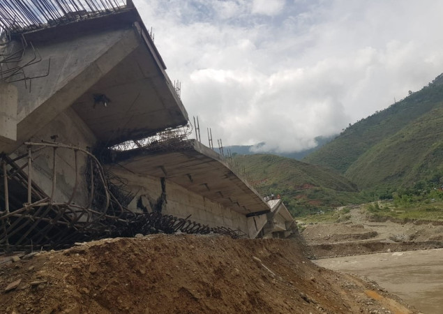 तामाकोशी नदीमा निर्माणाधीन मोटरेबल पुल पुर्न भाँचियो