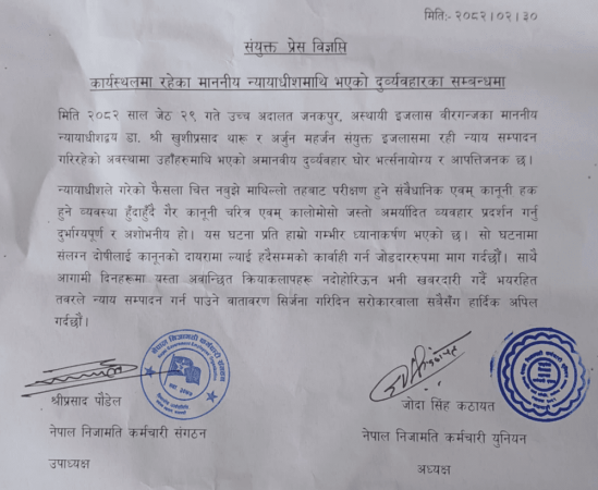 न्यायाधीशमाथिको कालोमोसो आपत्तिजनक : निजामती कर्मचारी सङ्गठन